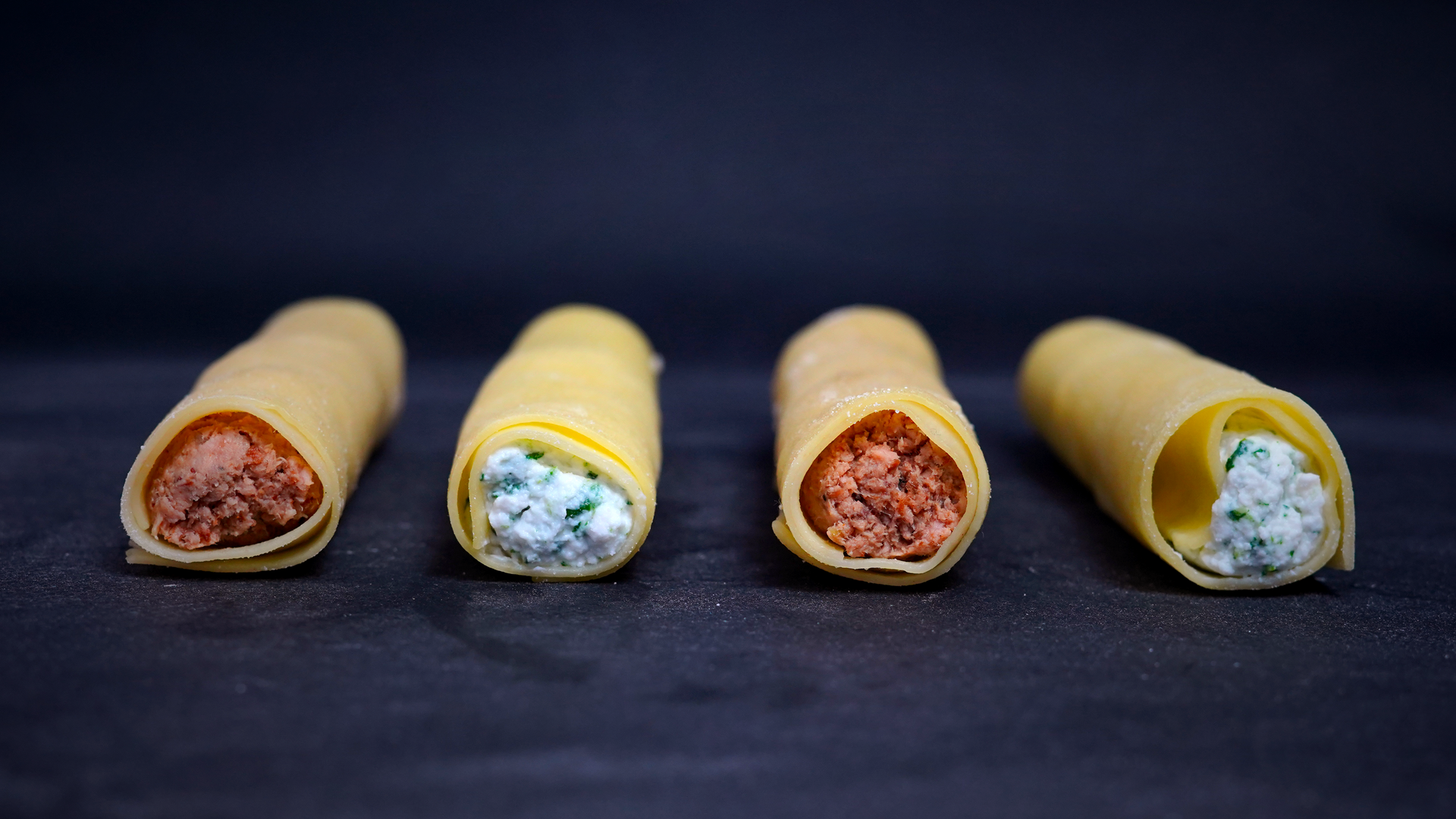 Cannelloni, farciti con carne oppure per i vegetariani con ricotta e spinaci.